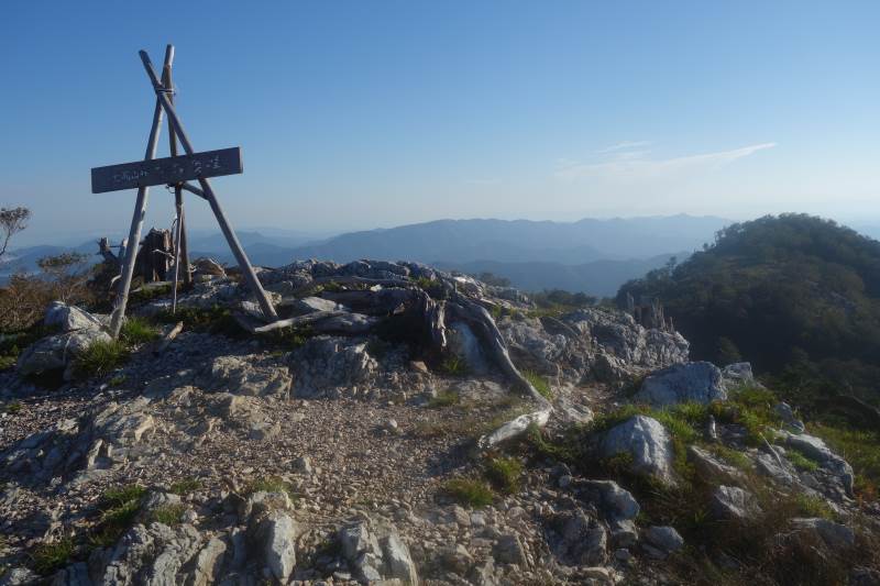 手軽にテント泊ができる明神平に行きました。登山口の大又へ昼頃に到着、ゆっくりと登って明神平には夕方に着きました。この日はガスの中でまったく展望なしでした。どこにテントを張るか一番良い場所を探して、テント設営、美味しい夕食を摂り、20時前に寝ました。ほぼ皆さん、ぐっすりで予定の4時を過ぎ5時頃にようやく起きだして、朝食後、早朝の山登りに出発しました。この日は快晴で快適な山登りが楽しめました。