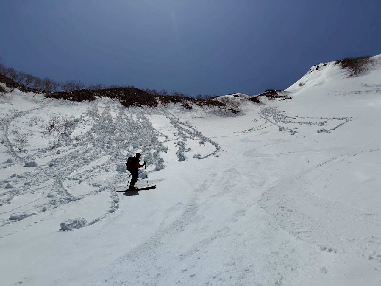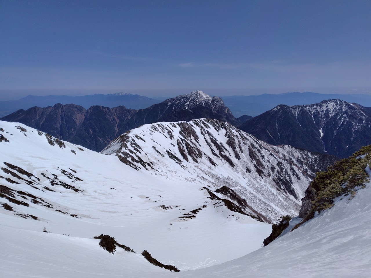 山スキーとしては賞味期限ぎりぎりのタイミング。仙丈ヶ岳トップからのドロップインで仙丈カールと藪沢をつないで山スキーを楽しみました。  S.I