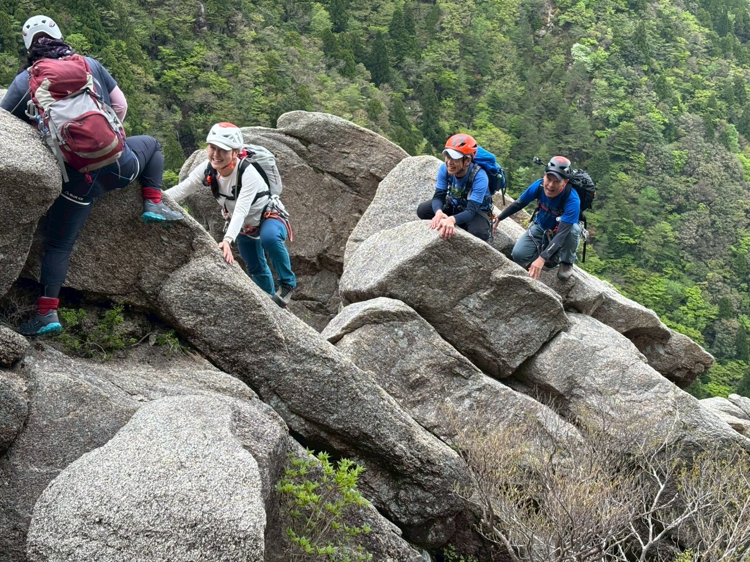 今年は例年秋に開催している集中登山例会を5月にも企画し、御在所岳へ。後尾根コースではルートファインディングを楽しみながら、所々にある展望台からの景色を堪能つつ登りました。下山はスムーズに進み、リーダー以外の参加者5名が初めて歩くルートであったため、満足感のある山行となりました。