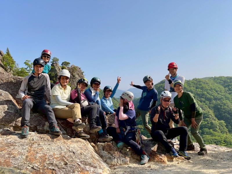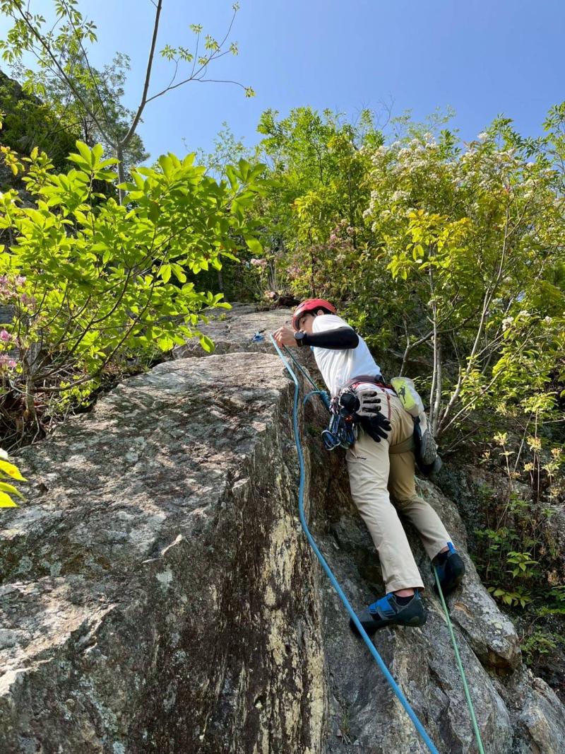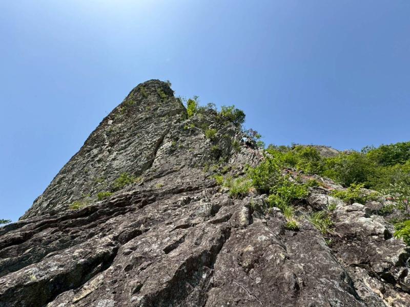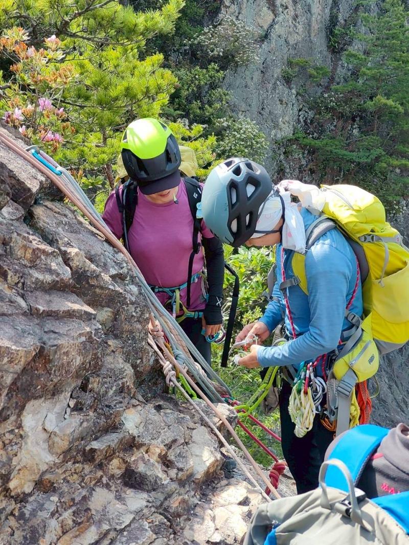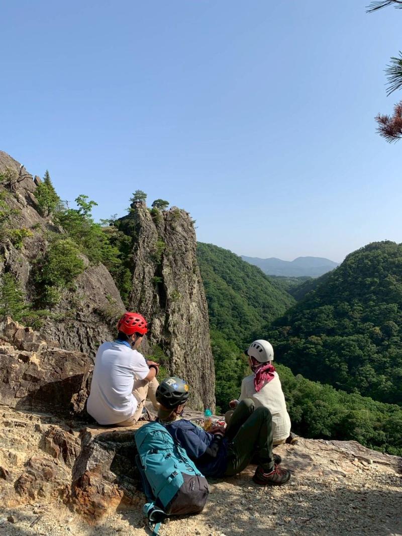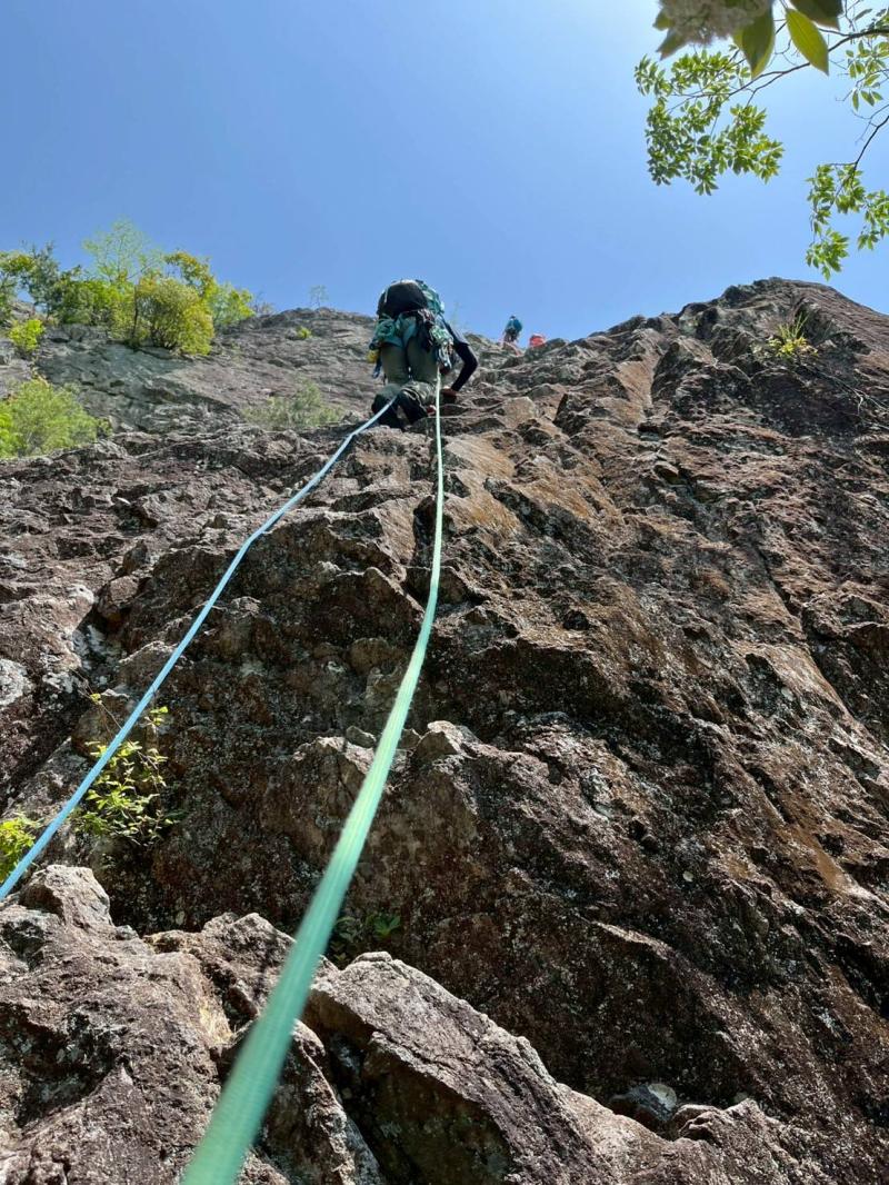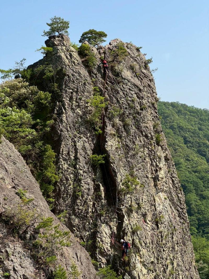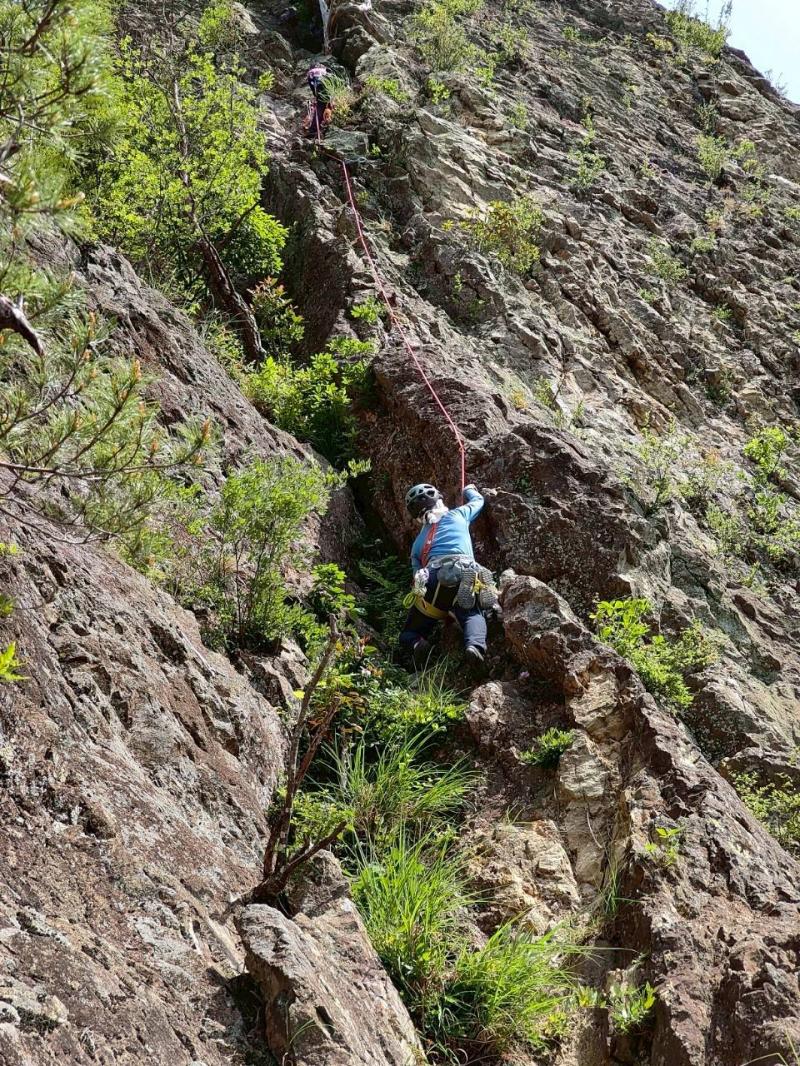 ローソク岩を中心とした、百丈岩の岩登り、若い人とベテランの混合のメンバーお互いにシステムを確認し合ってのマルチピッチ暑い中の例会でしたが、特に若い人には、いかに段取り良く安全にマルチピッチを登ると言う事の勉強に成ったかと思います。