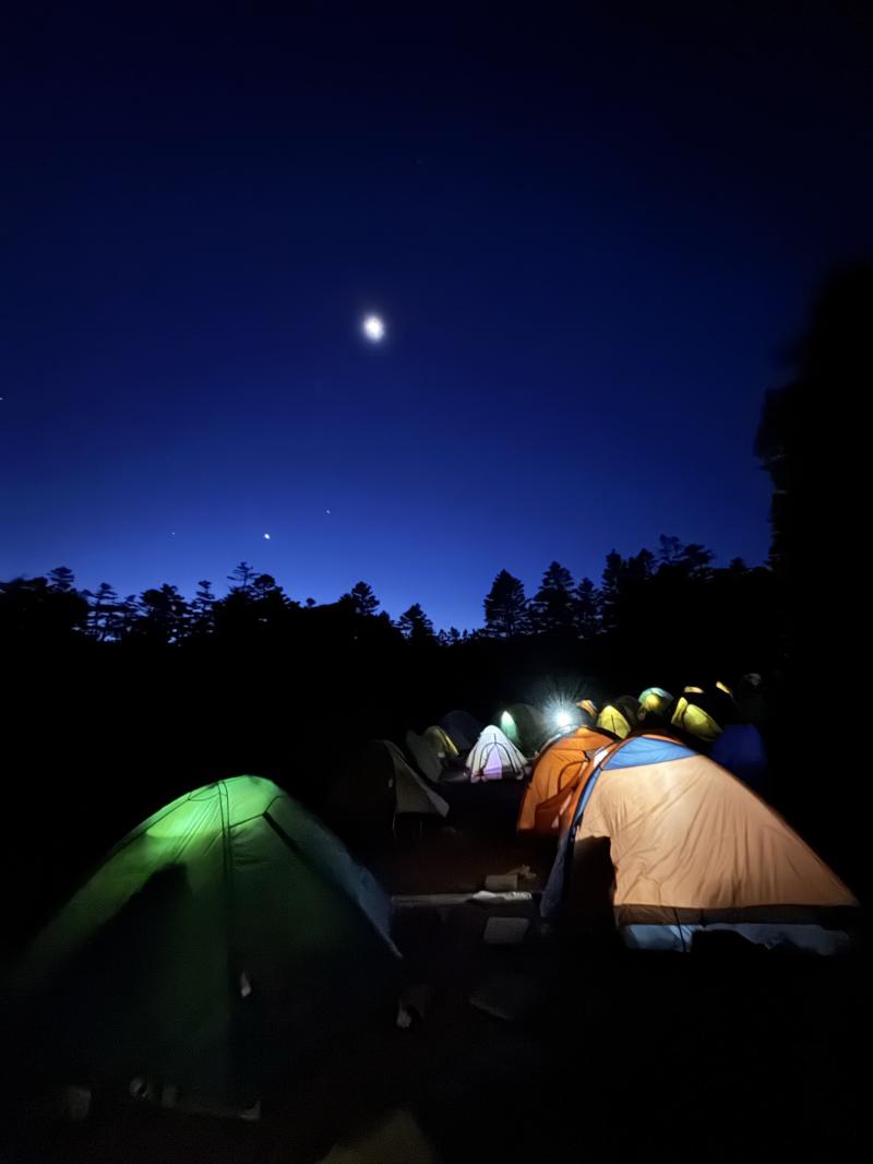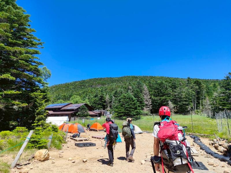 2日目、中山峠を越えて稲子岳南壁取付きから5ピッチの快適クライミングを終えて下山。次の岩場に向けて途中まで移動し、無料の快適キャンプ場にて明日のための英気を養う。