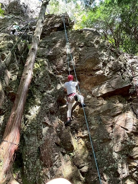 猛暑の中での岩登り、朝駐車場に集合したらすでに6台車があり、日影が多いゲートロックにはすでに1パーティが来ていた