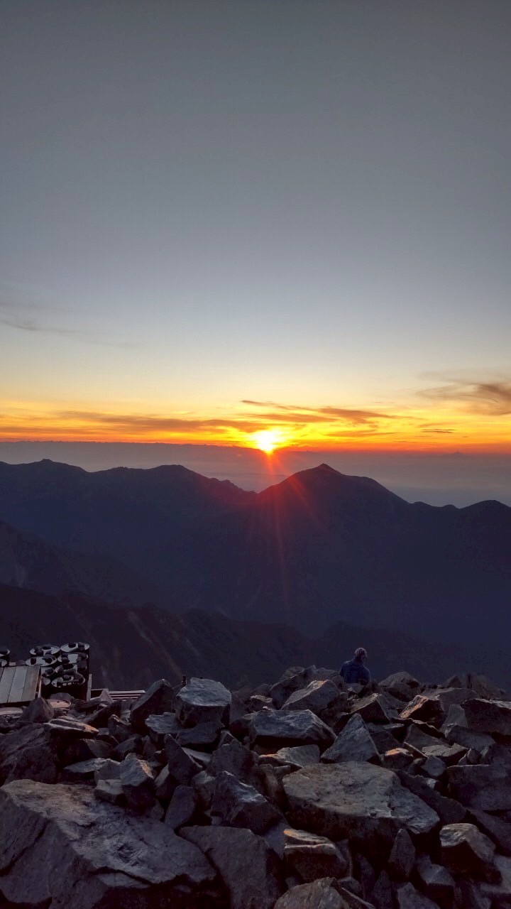 出発する前から3日間午後は雨予報だったが山では良いお天気に恵まれ、北穂高小屋で名物の豚のショウガ焼きも食べられ、楽しんできた。南稜の鎖やはしごを登るとき下りは降りられるだろうかと心配したが、山小屋で出会った大ベテランの男性が「登れたところは必ず降りられる」の言葉に励まされた。3日目はご来光も見られ、槍ヶ岳や穂高連峰など360度のパノラマに感動。無事下山できたことに感謝。