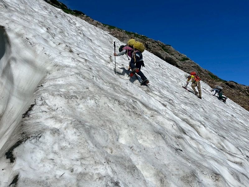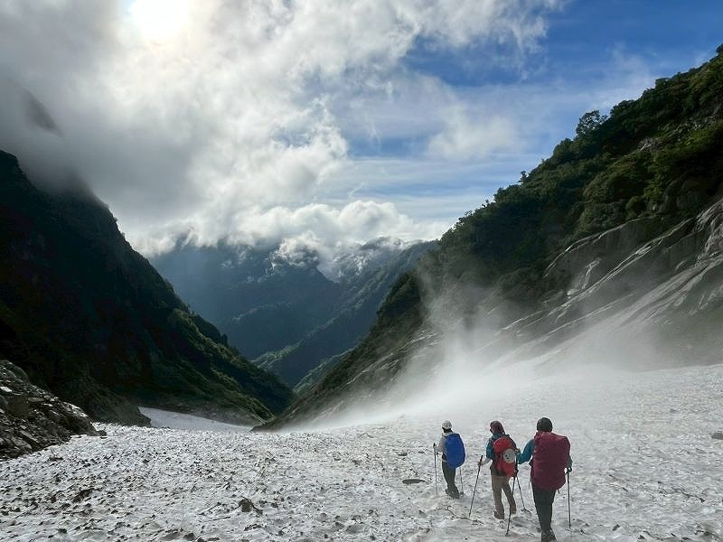 | コース | 1日目:室堂~雷鳥沢~剱御前小舎(泊) 2日目:剱御前小舎~剱沢雪渓~二股~北股ルート~池ノ平小屋(泊) 3日目:池ノ平小屋~小窓氷河~三ノ窓~池ノ谷乗越~長次郎のコル~剱岳~別山尾根~剣山荘(泊) 4日目:剣山荘~雷鳥沢~室堂 |