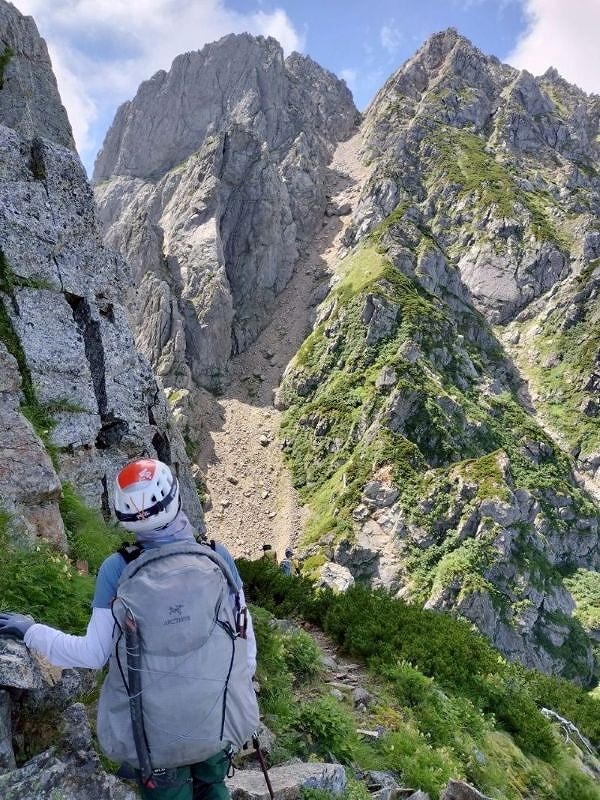 いつの頃からか、憧れと畏敬の念を抱いていた剱岳北方稜線をようやく完登することができた。奥剱の秘境に佇む池ノ平小屋から小窓氷河を登り詰め、小窓ノ王を回り込んで三ノ窓へ。そこから、恐らく国内で最も劣悪なガレ場、池ノ谷ガリーを登って、池ノ谷乗越、長次郎のコルへと緊張の糸を切らすことなく岩稜歩きが続く。本峰に到達したときの喜びはひとしお。女性4名で力を合わせて達成できたこと、同行のメンバーに感謝です。(S.I.)