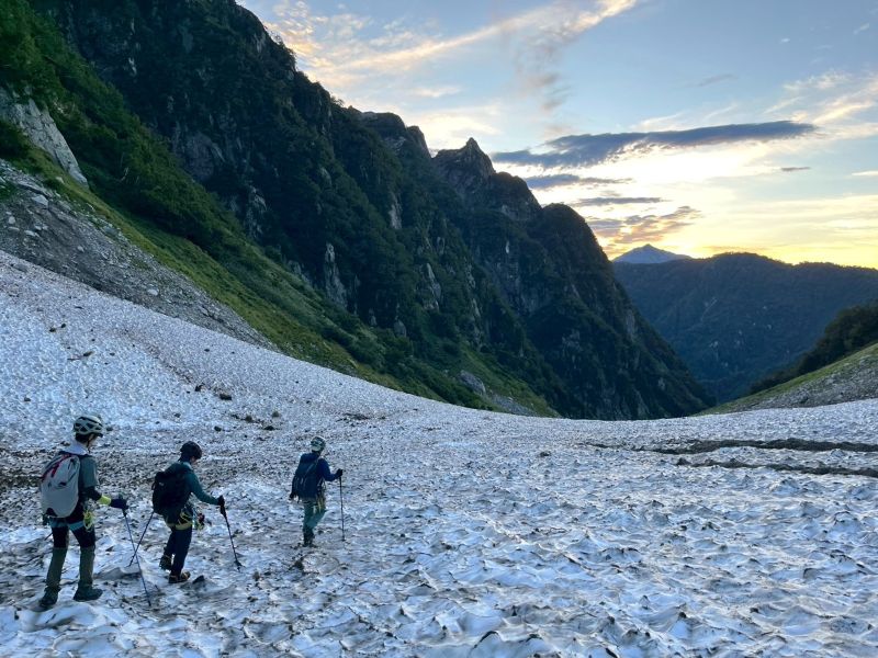 | コース | 1日目:室堂~雷鳥沢~剱沢キャンプ場 2日目:剱沢キャンプ場~剱沢雪渓~平蔵谷取り付き~源次郎尾根 第I峰~第II峰~剱岳山頂~別山尾根~剣山荘~剱沢キャンプ場 3日目:剱沢キャンプ場~雷鳥沢~室堂 |