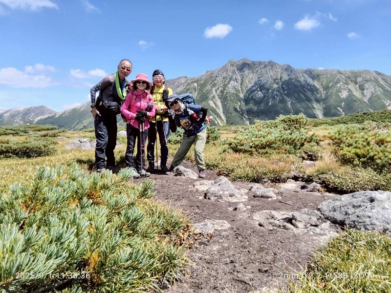 秘境雲ノ平。全行程 好天に恵まれ 槍ヶ岳~穂高連峰、雲ノ平からの笠ヶ岳、黒部五郎、水晶岳、鷲羽岳、薬師岳等の山が圧巻の様相で眼前に広がる。行程は長く厳しい道のりだが全員満足の山行でした