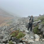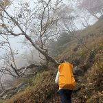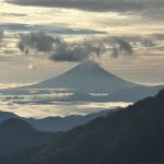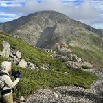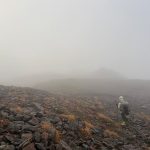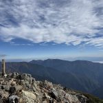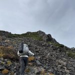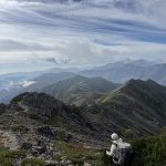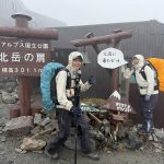 三連休ながら天気は不安定。稜線では暴風雨に見舞われた。富士山の次に高い北岳でも、残念ながら眺望なし。2日目、雨は止んだものの依然風が強く何度も何度も対風姿勢を取る。3000mの天空の稜線でも眺望を臨めないまま黙々と歩き続けたが、農鳥小屋手前でようやく晴れ間が見えだし、やっと稜線歩きを楽しむことができた。(Y.S)