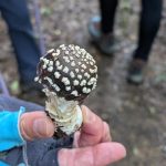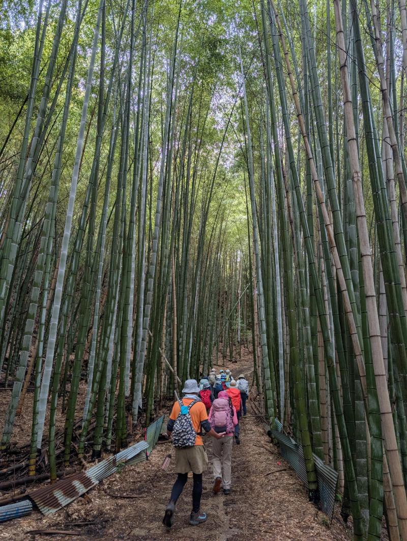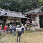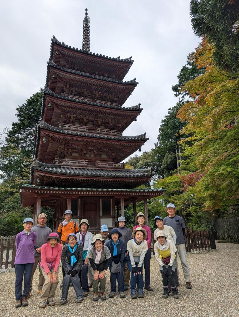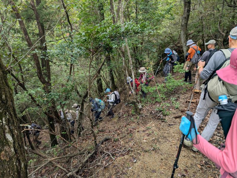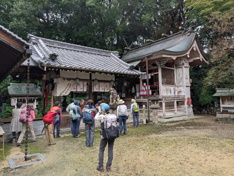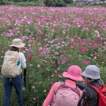 気温は20℃前後と絶好の季節になったが、雨上がり直後で風も無く蒸し暑い中でのハイキング。涌出宮参拝後は美しい竹林の中を通り抜け、道中あちこちに頭を出しているキノコ達を眺め、南山城地区最高峰の三上山頂上展望台へ。360度の大展望を満喫し、昼食休憩。いにしえの都の様々な遺構を巡りながら、満開のコスモス園で目の保養をし、くにのみや学習館で古都の歴史をビデオ学習した。雨に降られることもなく盛り沢山の例会でした(T.N)