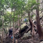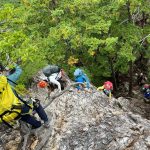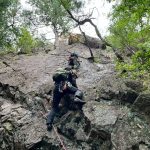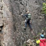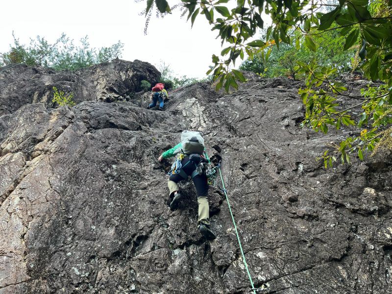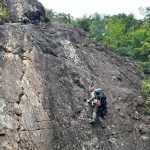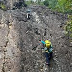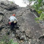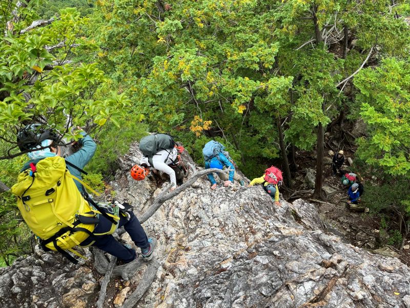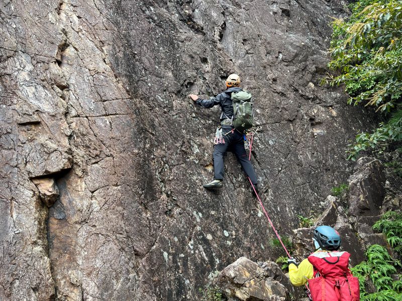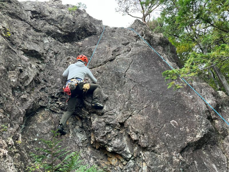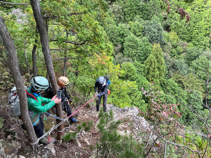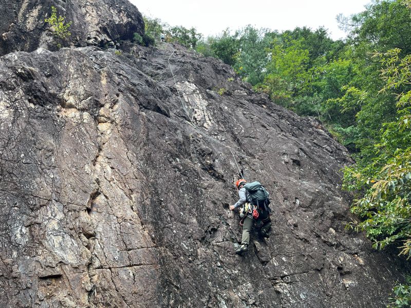 朝に今季一番の冷え込みを記録したというこの日、金毘羅マルチピッチルートへ8名で向かった。昨秋入会されたメンバー2名も果敢にリードに挑戦し、日頃の練習の成果を見せてくれた。MさんもKスラブを初リード。実にアッパレでした。4組とも順調に北壁まで登ったあと、ビビリフェイスはノーマルと10aをTRで練習。K上部から2回の懸垂下降を経て下山した。リードクライマーが次々に誕生し、岩メンバーの層が厚くなってきた。(S.I.)