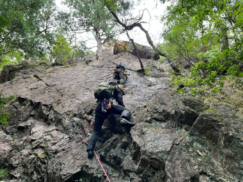 | コース | 北尾根1ピッチ目→M→K→北壁→ビビリフェイス→K上部までクライムダウン→KからMへ懸垂下降2回→Mから下山 |