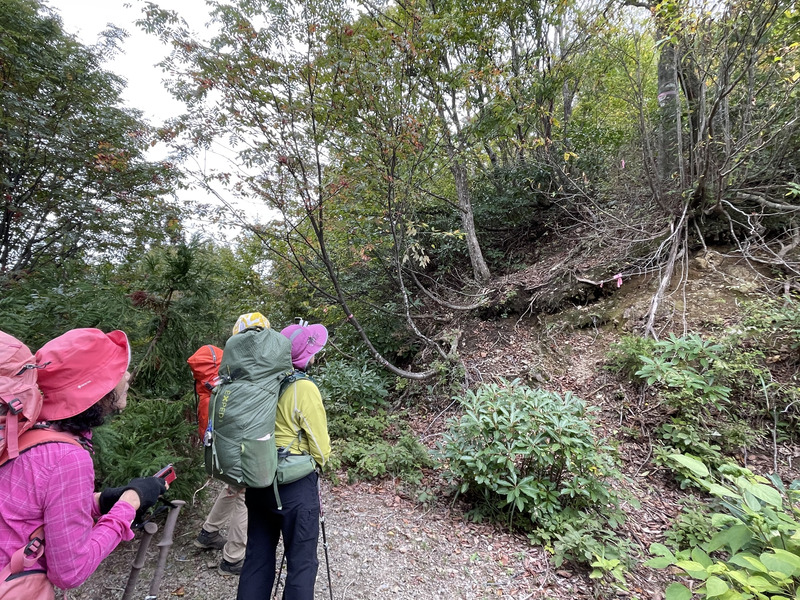 SHIGA1の湖北ルート、金糞岳を越える1泊2日のロングコースです。今回のルートは、むかごあり、キノコあり、クリもたくさん落ちていた初秋の山歩き。ルートとしては、少々の藪(笹)漕ぎ?細いトラバース、ピンクテープがあるかと思えば、ルートロスにつっこんでしまう。県境ルートは、総合力の試されるコースだと思いました。