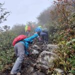 下蒜山から上蒜山までの三座縦走にチャレンジしてきた。スタート時は雨で標高を上げると霰に変わり、北風も強く雷まで鳴る悪条件。下蒜山を過ぎたあたりから天候は急速に回復し、紅葉を眺めながらの稜線歩きを楽しむことができた。とはいえ、ウェッティーかつ粘度質な登山道は通常よりも難易度は高く、最後まで集中力を切らす事なく安全に歩き通せたのはみなさんのご協力とスキルがあってのことだった。
