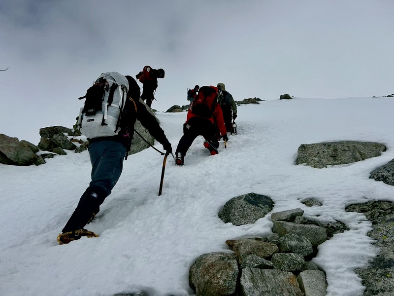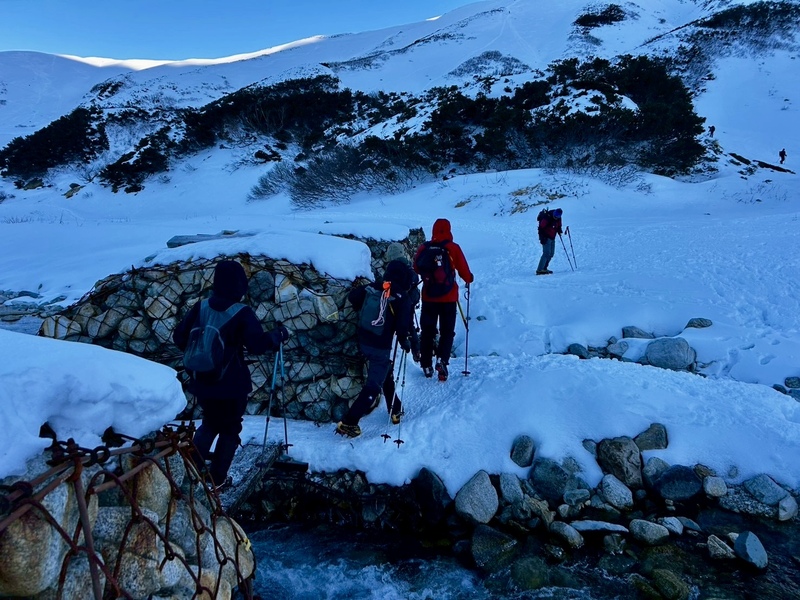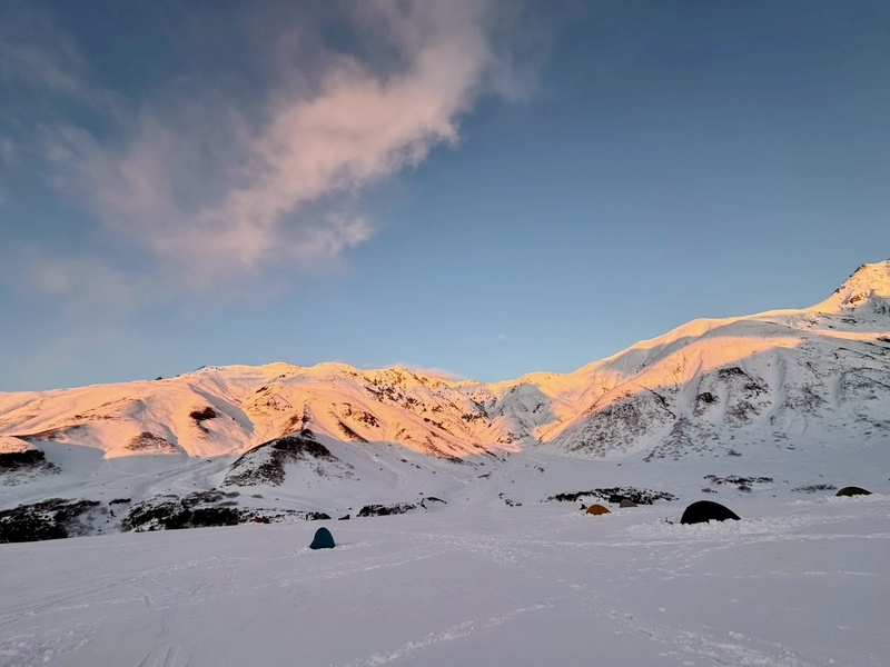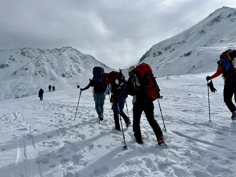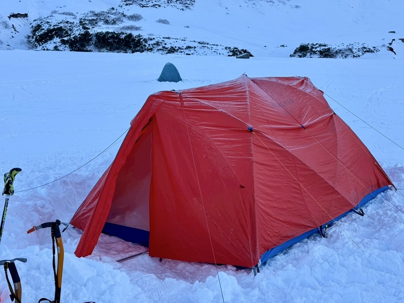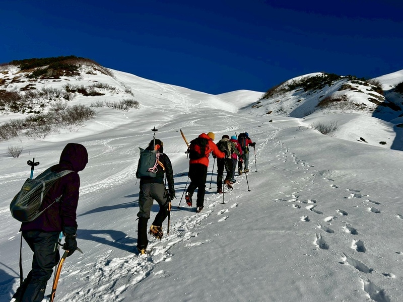 装備のチェック、アイゼン・ピッケルワーク、雪上テント設営、水作り、テント生活など充実した二日間となりました。