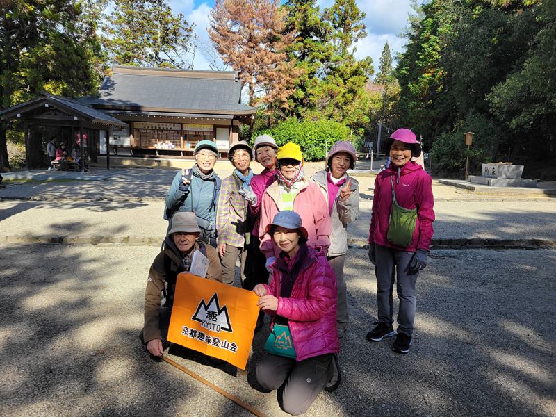近鉄桜井駅に集合した総勢8人、山の辺の道の写真・イラスト入りコースガイドをサブリーダーのAさんからいただいて、北東に三輪山を仰ぎながら歩きだしました。次第にお天気も良くなり青空のもと、紅葉と柿の実の赤に彩られた歴史街道ハイキング。JR柳本駅に着く頃には沿道で買い求めた果物や野菜で、用意した買い物袋が一杯でした。