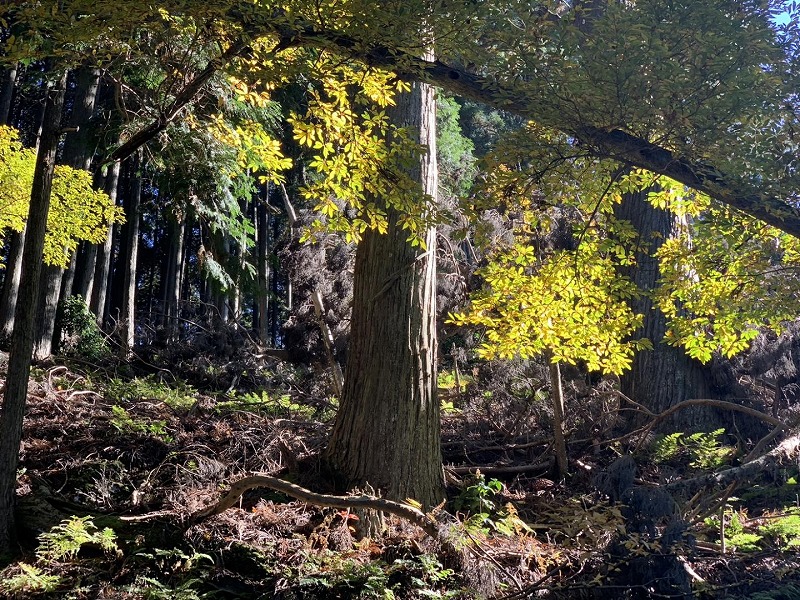 今年は例年より遅くやっと紅葉が始まり赤・黄・緑とグラデーションを楽しむことができた。愛宕神社からの下りでは 現在地の確認や 分岐点での方向確認等を 読図をしながら歩きました。林道の端から神護寺の下りは数年前より少し荒れていた。 清滝川の川面に映る夕日の紅葉は格別だった。