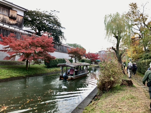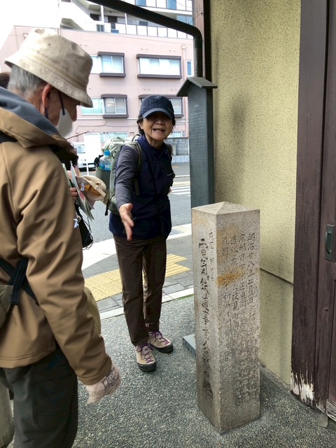 京阪追分駅を降りて「みきハ京ミち」「ひだりハふしミみち」の道標がある分岐点(三差路)髭茶屋追分町から出発。大津から京都を通らず伏見、淀、枚方、守口、大坂「高麗橋」まで、東海道は五十七次まであったとのこと。伏見ではインクライン跡や電気鉄道発祥の地に立ち寄ったり、日本で錬羊羹を最初に作ったといわれる駿河屋本店でお土産を買ったり。