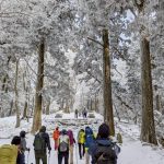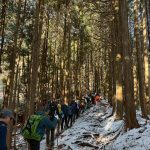 毎年恒例の「愛宕神社初詣」例会。今年は「オープン体験山行」を兼ねて、「表参道コース」と「つつじ尾根コース」に分かれて実施。毎年楽しみにされている会員さんも多く、総勢40名あまりが賑やかに集合写真に収まった。年末年始の冷え込みで神社付近は雪景色。初めての雪山登山を体験された方もあり、寒い中でみんなで作って食べるお善哉は格別の味だったと嬉しい感想を頂いた(M.M)