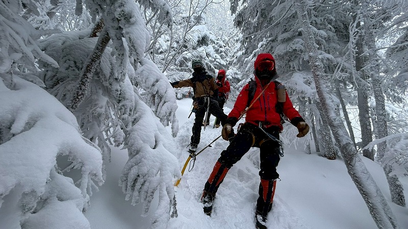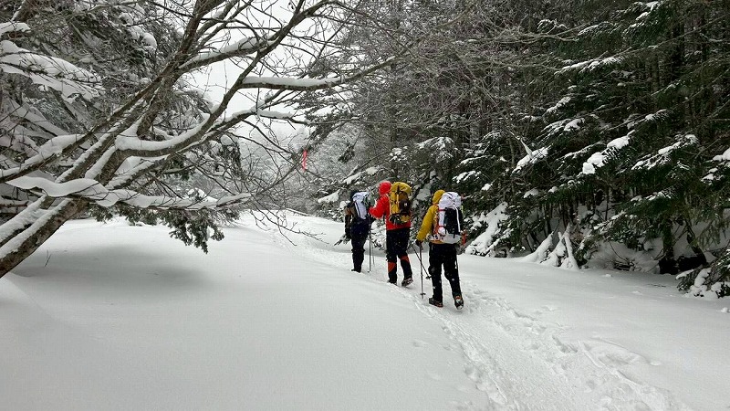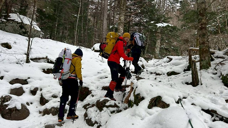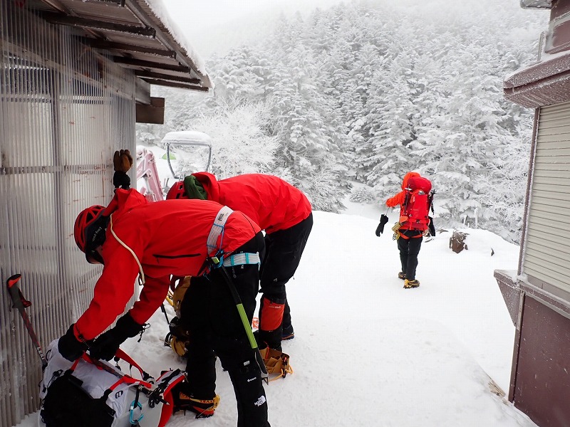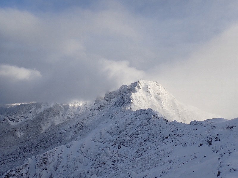 厳冬期の南八ヶ岳縦走を企画したが、日本海側の大寒波による風速20mの爆風吹雪予報のため計画を変更、時間をずらして地蔵尾根から稜線へ上がり赤岳展望荘に宿泊。翌日は午前中のみ風が弱まる予報だったため縦走を断念し、赤岳のみ登頂して文三郎尾根から下山した。(Y.S)