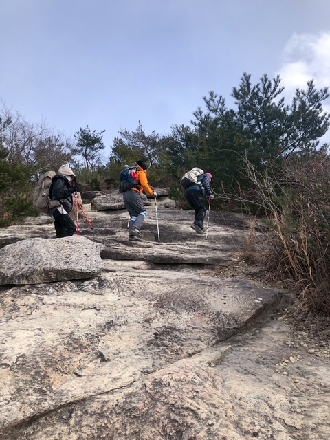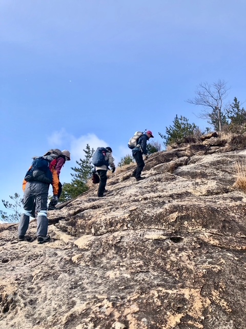 夏場は遮るものがないので登らない山です。冬場に登る計画を立てました。当日は風が強く、遮るものがない。柏餅を食べてから山に取り付きました。登山道はほぼほぼ岩稜と地道が少し。頂上で写真に収まり南西に見えてる鉄塔を目指して下りにかかり、鉄塔より東方向にある長尾登山口へ下山をしました。
