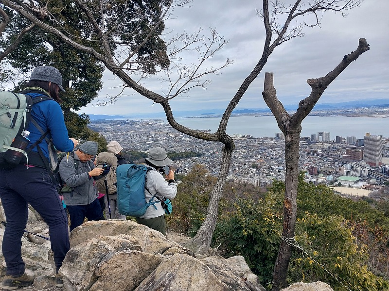 昨日の暖かさから一転、寒さが予想される中、服を着こんでの出発。途中で雨が降るかもしれない,せっかくのビューティースポットも曇りで見えないかもしれない、などと心配していたが嬉しい誤算だった。逢坂山や長等山からは、琵琶湖と雪をかぶった伊吹山と比良の山並みがきれいに見えた。特に最後の長等山テラスからの眺めは最高だった。寒い中を歩いたご褒美かな。足並みがそろっていたので早く解散できた。