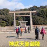 一時的に寒波が去り暖かな快晴の下、古代の歴史ロマンを紐解きながら、万葉集などでおなじみの大和三山とその周辺の旧跡や社寺を巡る。市街地の低山ながらなかなか歩きごたえも有り、橿原神宮では、今日は大和二山になるかもと話が出るほど。午後はピッチを上げ何とか三山巡りを終えたが、終わってみればまだ居酒屋が開店する前の明るい時間帯。開いているお店を探し、アルコールを交えて山談議など反省会で締めくくり(T.N)
