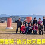 | コース | 近鉄畝傍御陵前駅~神武天皇陵~畝火山口神社~畝傍山~橿原神宮(昼食)~本薬師寺跡~天香久山~天香山神社~藤原宮跡~藤原宮跡醍醐池四等三角点~耳成山口神社~耳成山~近鉄大和八木駅(解散)~(反省会) |