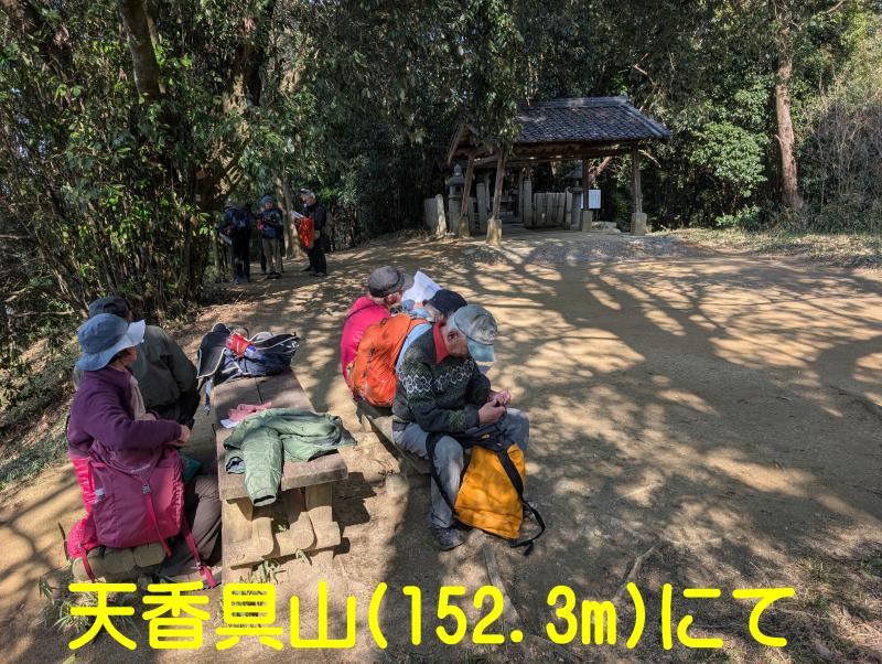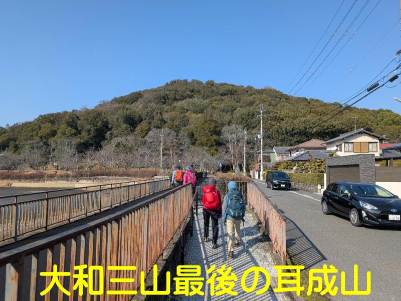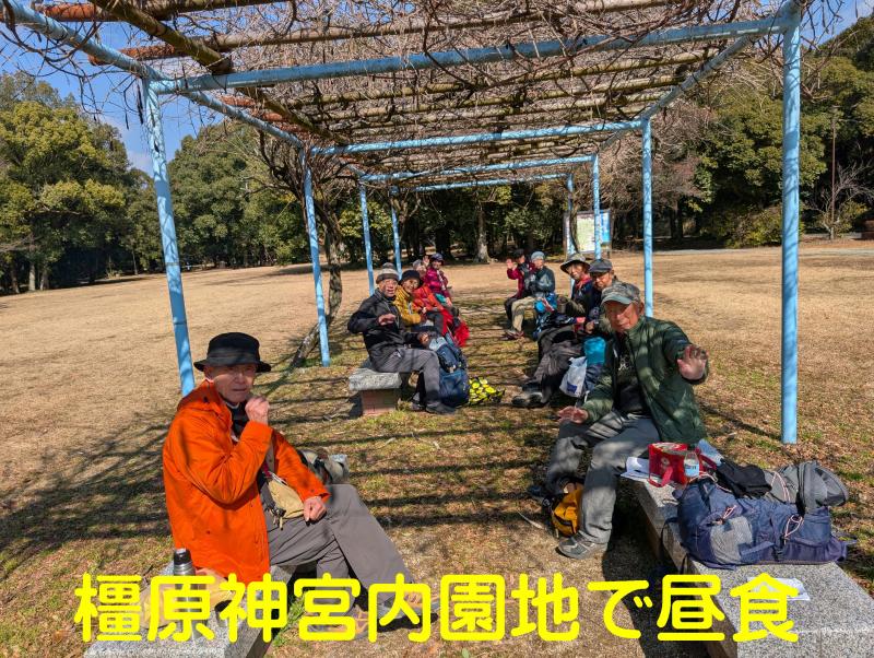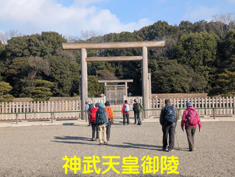 一時的に寒波が去り暖かな快晴の下、古代の歴史ロマンを紐解きながら、万葉集などでおなじみの大和三山とその周辺の旧跡や社寺を巡る。市街地の低山ながらなかなか歩きごたえも有り、橿原神宮では、今日は大和二山になるかもと話が出るほど。午後はピッチを上げ何とか三山巡りを終えたが、終わってみればまだ居酒屋が開店する前の明るい時間帯。開いているお店を探し、アルコールを交えて山談議など反省会で締めくくり(T.N)