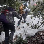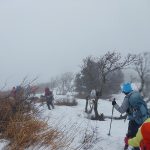 雪を求めて武奈ヶ嶽に行ってきた。残念ながら雪は500㍍位を過ぎてから見え始め、まるで春山の残雪のようだった。終始霧が取れない天候で、所々テープはあるものの薄い登山道やハッキリしないトレース。登山道や地形の見極め、尾根の確認等しながら、6㎞余り5時間強の山行を終えた。(NY)