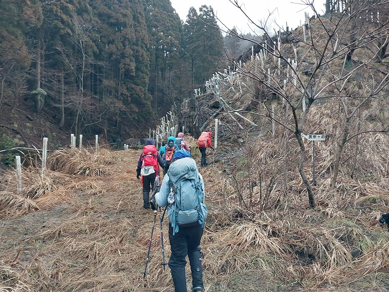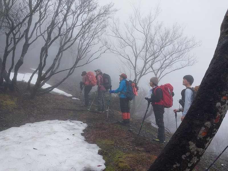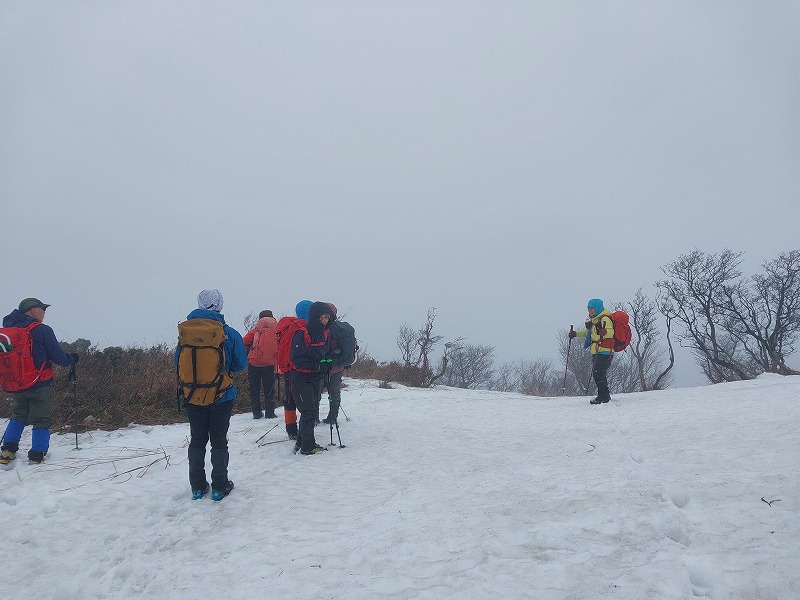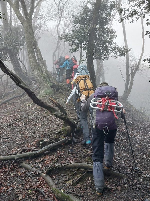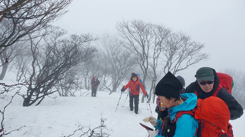 雪を求めて武奈ヶ嶽に行ってきた。残念ながら雪は500㍍位を過ぎてから見え始め、まるで春山の残雪のようだった。終始霧が取れない天候で、所々テープはあるものの薄い登山道やハッキリしないトレース。登山道や地形の見極め、尾根の確認等しながら、6㎞余り5時間強の山行を終えた。(NY)