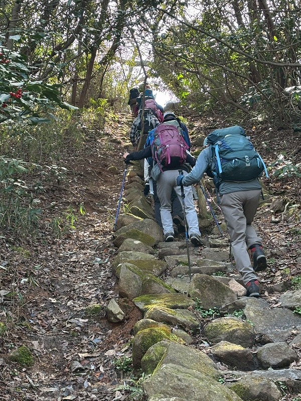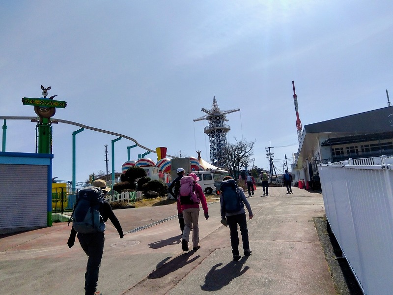 石切駅北側に今も残る孔舎衛坂駅跡(くさえざかえき)から歴史解説とともに歩き始め、雨上がりの澄んだ空気の中で大阪平野から六甲山地まで見渡す絶好の展望を楽しみながら、グレーピークに立ち寄りながら標高を上げ生駒山上遊園地へ到着。ユニークなアトラクション内の三角点を確認し展望台で昼食です。古道の趣が残る暗峠を越え、十三峠まで歴史を感じながら縦走し、高安山駅から西信貴ケーブルに乗り込んで一気に下山した行程でした。(JY)