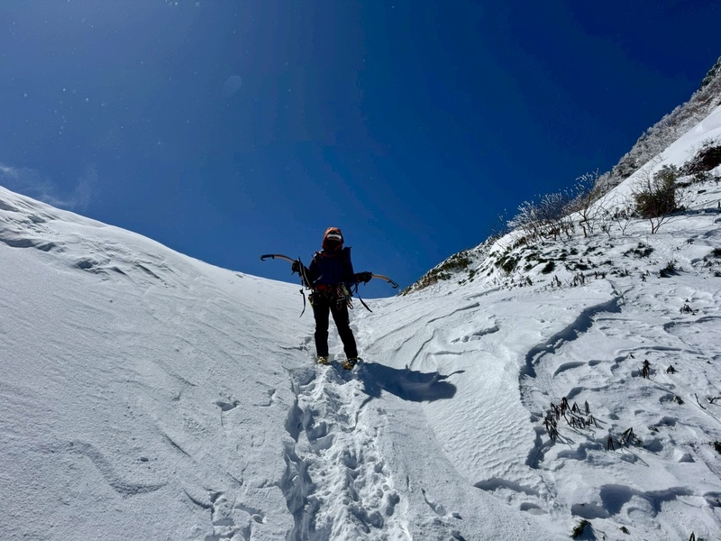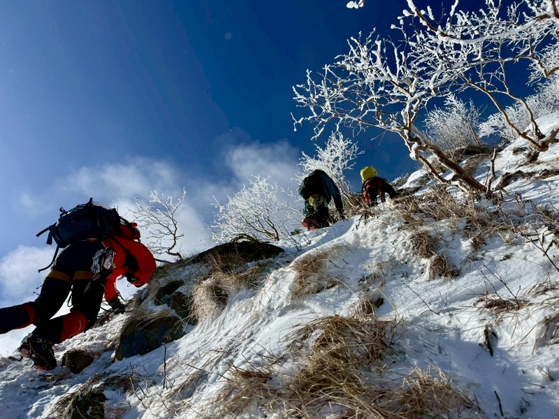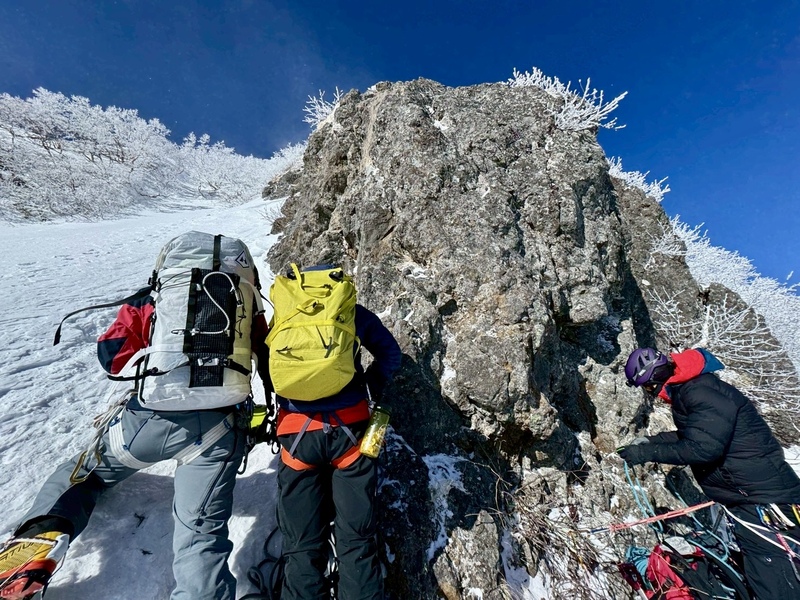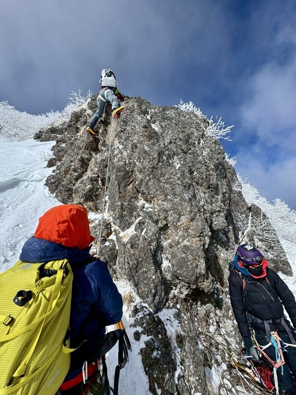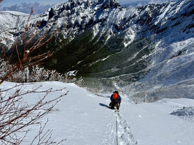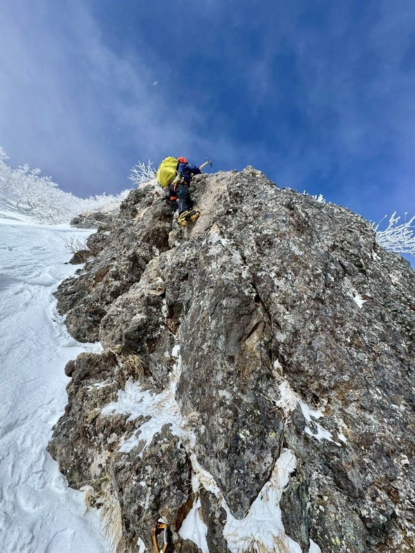 八ヶ岳の積雪期バリエーションの入門といわれている阿弥陀岳北稜を2パーティーでチャレンジしてきた。事前の天気予報では冬型気圧配置で強風が予想されたが、実際はそうでもなく快晴の中、楽しく登ることが出来ました。