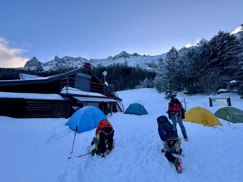 | コース | 赤岳山荘→赤岳鉱泉→北稜→阿弥陀岳→中岳沢→南沢→赤岳山荘 |