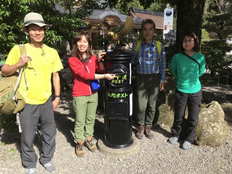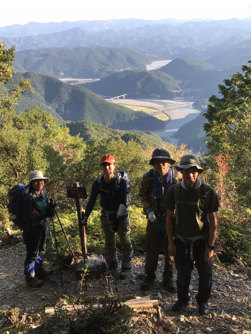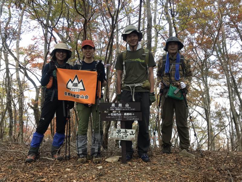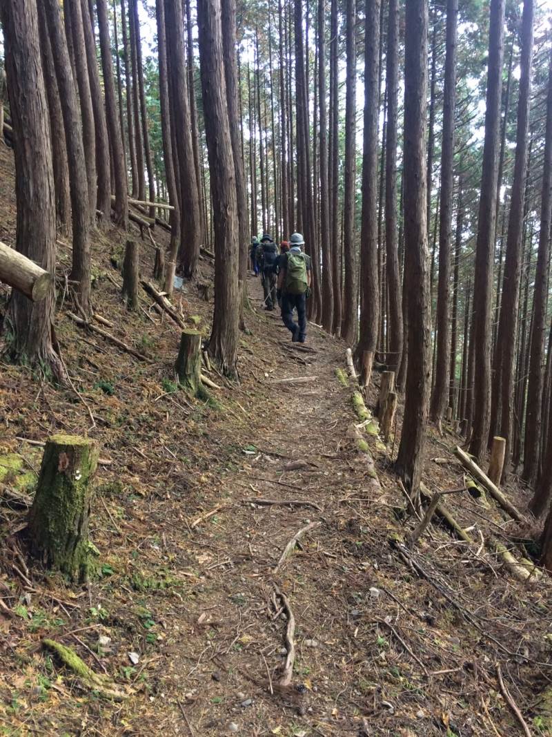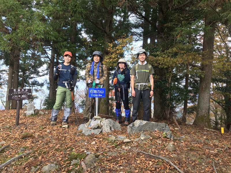 11月3日、「道の駅奥熊野古道ほんぐう」を出発、百前森山、石地力山、果無山を経て、果無峠で熊野古道小辺路に入り、熊野本宮に向かう道を下山する周回コースを歩きました。熊野古道はきれいに整備されていましたが、古道に合流するまでは、荒れている場所や地図とずれている道もあり、時間がかかりました。下山後バンガローで鍋を囲み楽しい時間を過ごしました。4日は中辺路を歩く計画でしたが、予定していたコースの通行止め等もあって中止し、熊野本宮をお詣りし、ゆっくり帰りました。