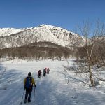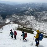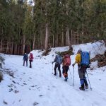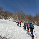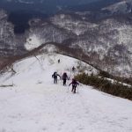 奥美濃彷徨の第6弾は積雪期しか行けない野伏ヶ岳へ。昨年もLが企画してくださったが中止となったこの例会、今回は絶好のお天気の中、雪山登山を楽しんできた。上りは絶景ポイントの和田牧場跡からキツい登りをがんばって山頂へ。足元から伸びている薙刀山への尾根はそのまま白山まで続く大パノラマだ。広々とした山頂から360度の大展望を楽しみ、帰りはダイレクト尾根から杉林の中をショートカットして駐車場まで戻った(M.M)
