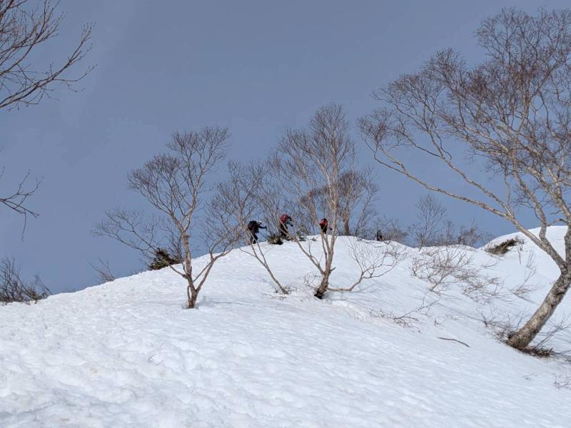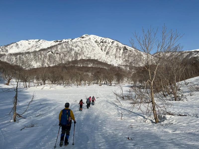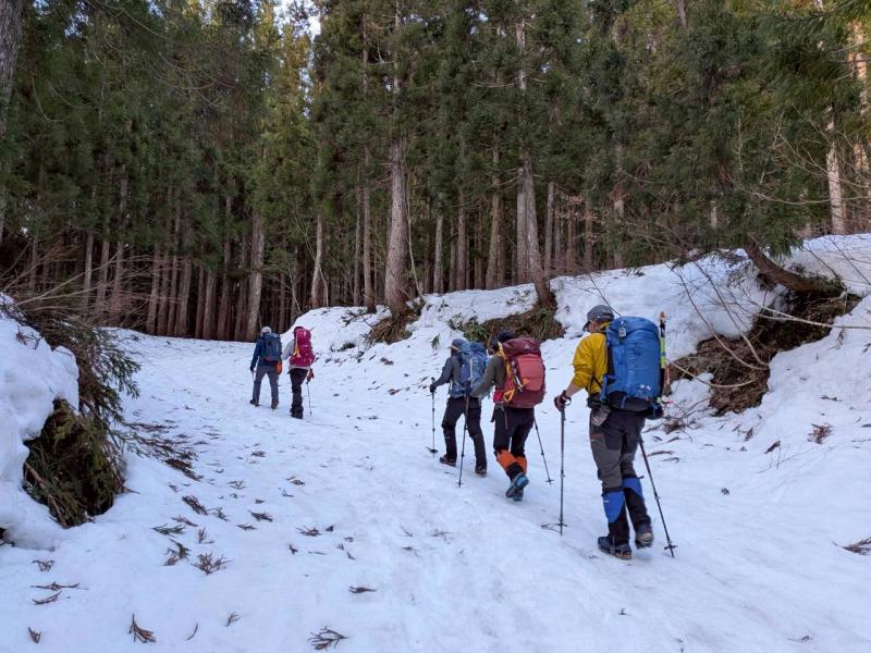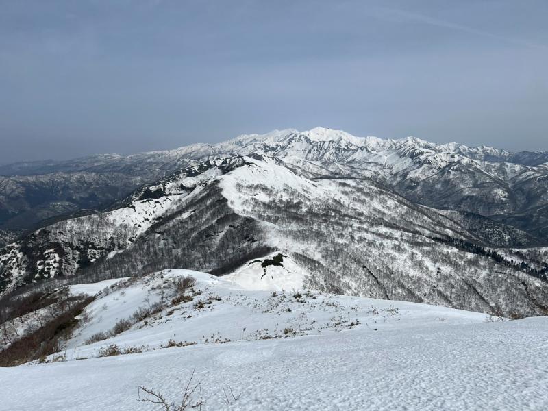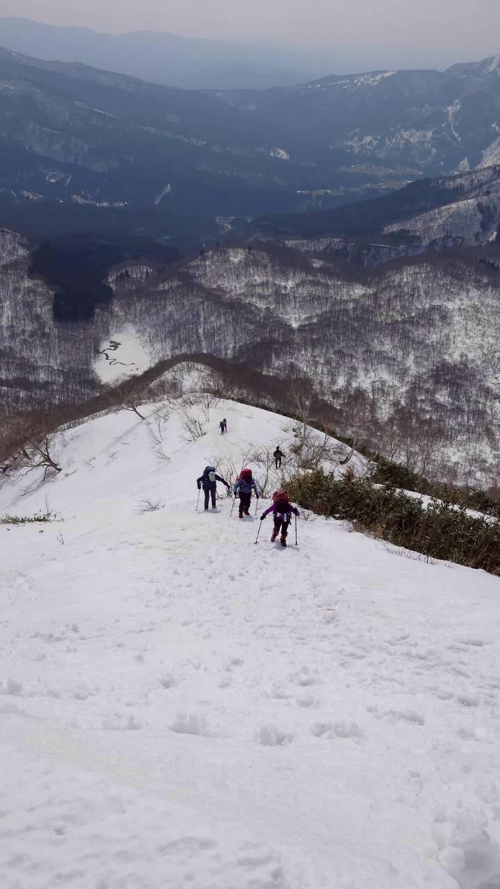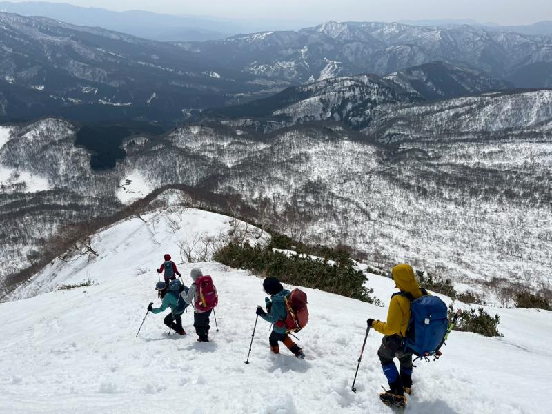 奥美濃彷徨の第6弾は積雪期しか行けない野伏ヶ岳へ。昨年もLが企画してくださったが中止となったこの例会、今回は絶好のお天気の中、雪山登山を楽しんできた。上りは絶景ポイントの和田牧場跡からキツい登りをがんばって山頂へ。足元から伸びている薙刀山への尾根はそのまま白山まで続く大パノラマだ。広々とした山頂から360度の大展望を楽しみ、帰りはダイレクト尾根から杉林の中をショートカットして駐車場まで戻った(M.M)