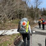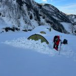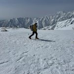 予報は爆風。それでも好転を信じ出発。二股ゲートから猿倉までは冬季通行止めで林道を2時間歩く。融雪で足元は重い。白馬尻手前から風雪が強まり、夜は突風でテントが揺れ続けた。3時起床、外は激しい風雪。5時、稜線の過酷さを考え撤退を決断。翌日、唐松岳から白馬主稜を望み、来年の再挑戦を誓った。(Y.S)