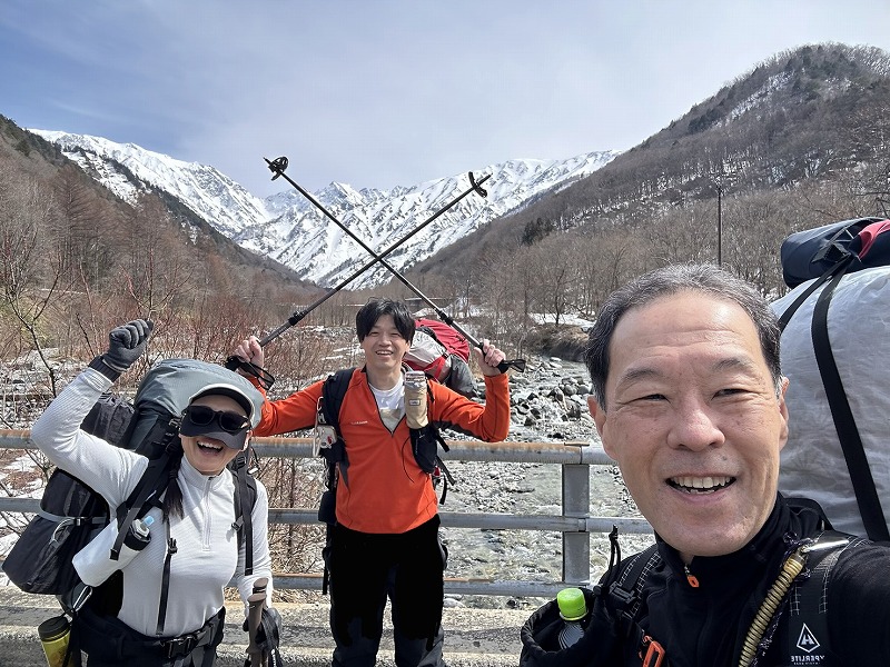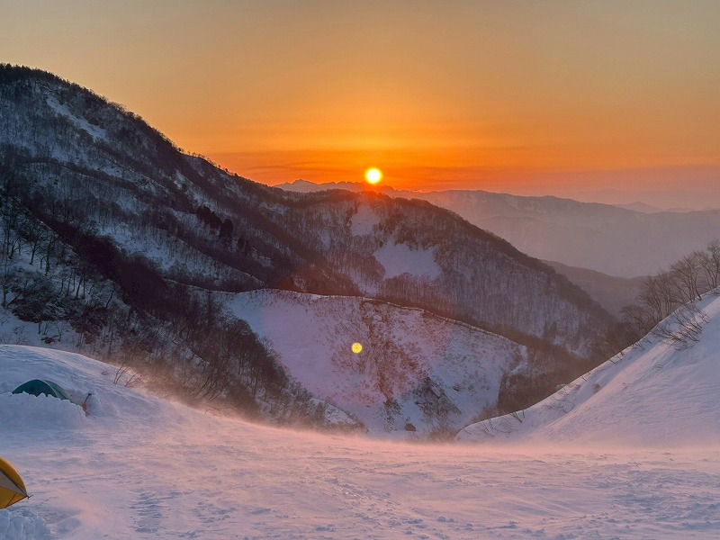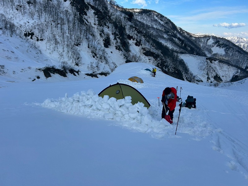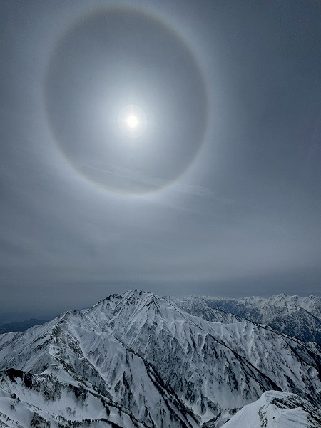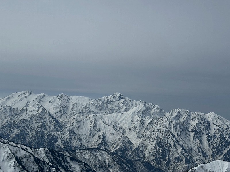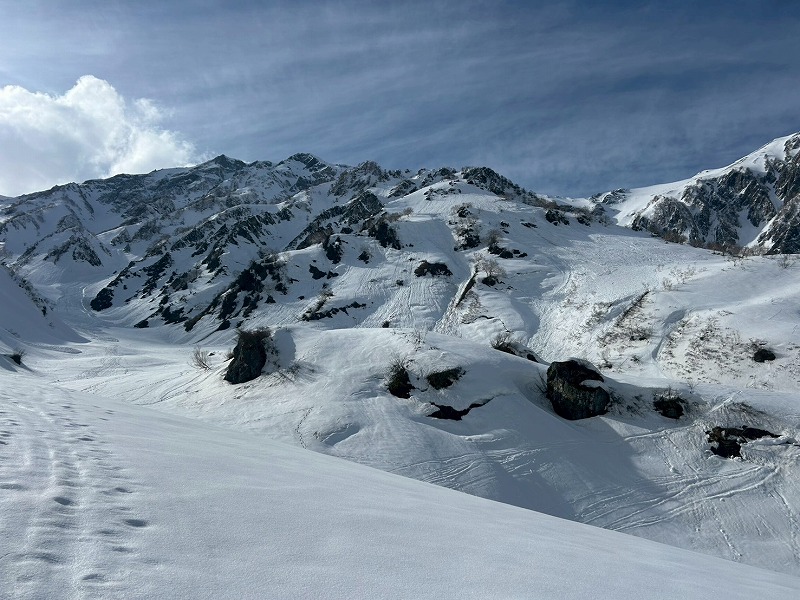 予報は爆風。それでも好転を信じ出発。二股ゲートから猿倉までは冬季通行止めで林道を2時間歩く。融雪で足元は重い。白馬尻手前から風雪が強まり、夜は突風でテントが揺れ続けた。3時起床、外は激しい風雪。5時、稜線の過酷さを考え撤退を決断。翌日、唐松岳から白馬主稜を望み、来年の再挑戦を誓った。(Y.S)