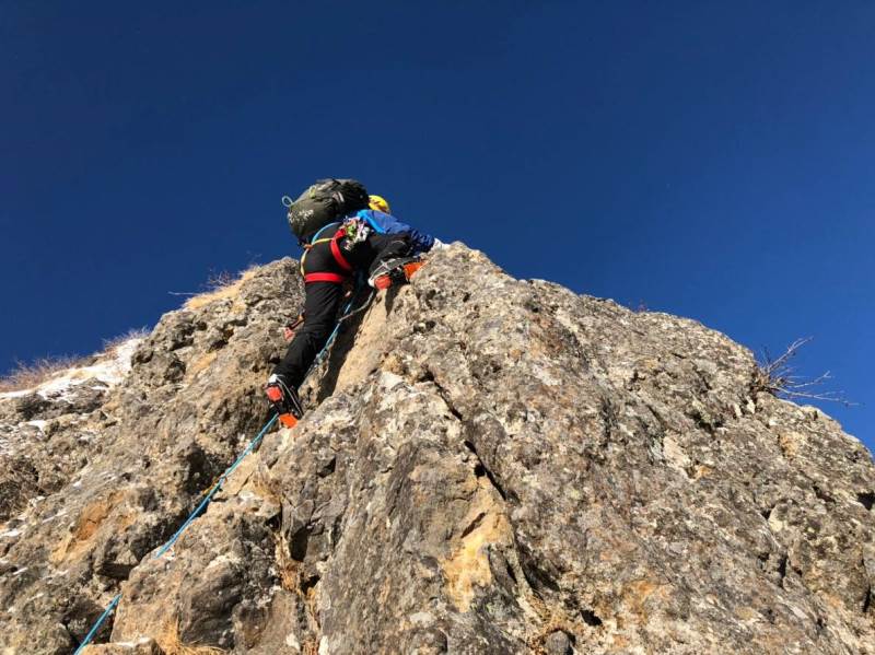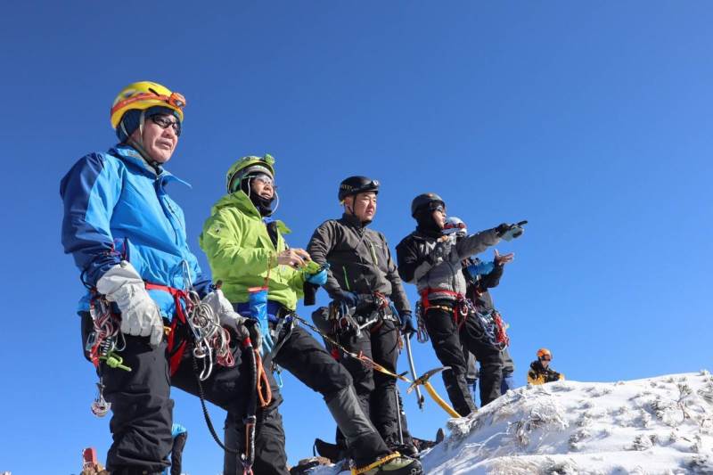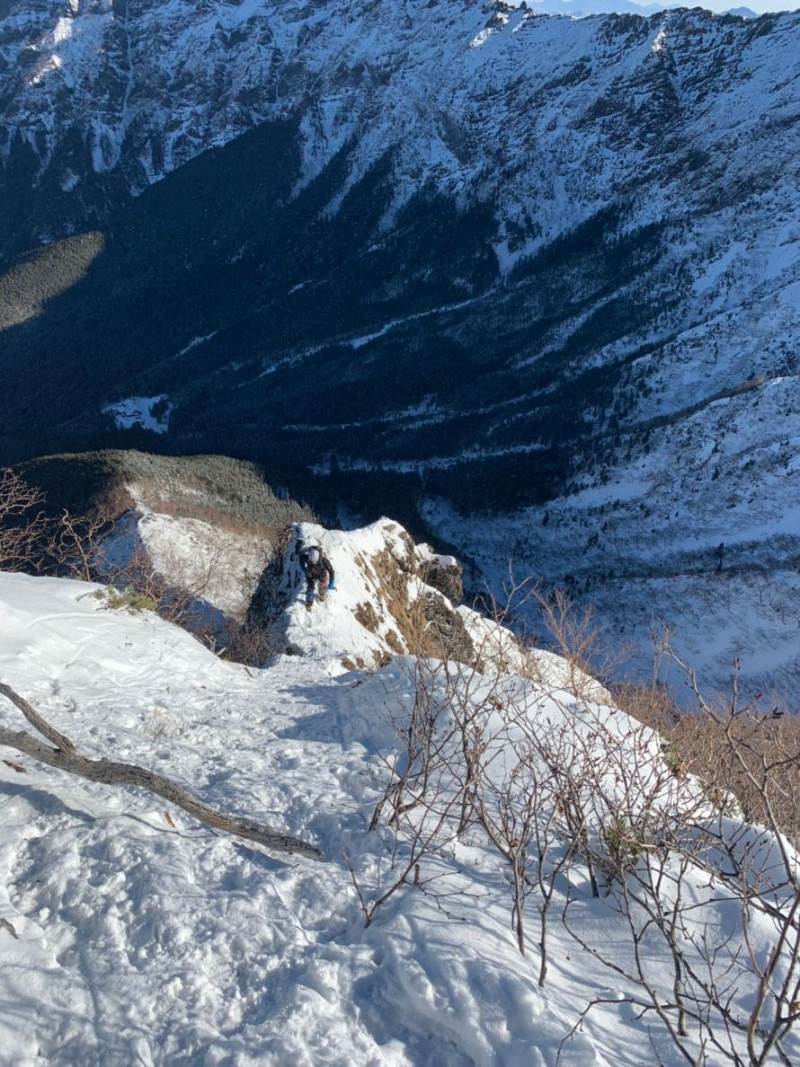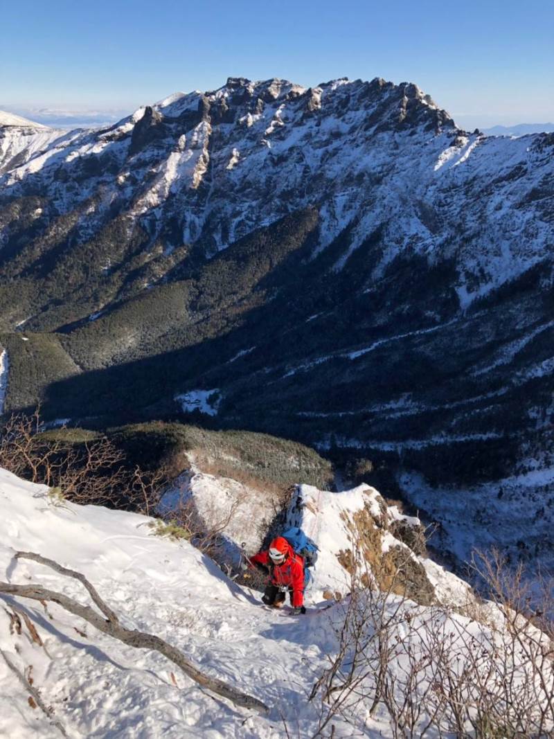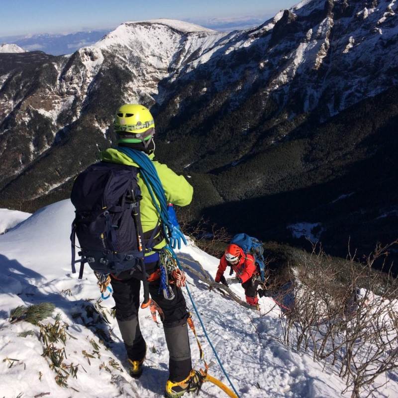 快晴の中、雪山岩登り初級の阿弥陀岳北陵に行って来ました。