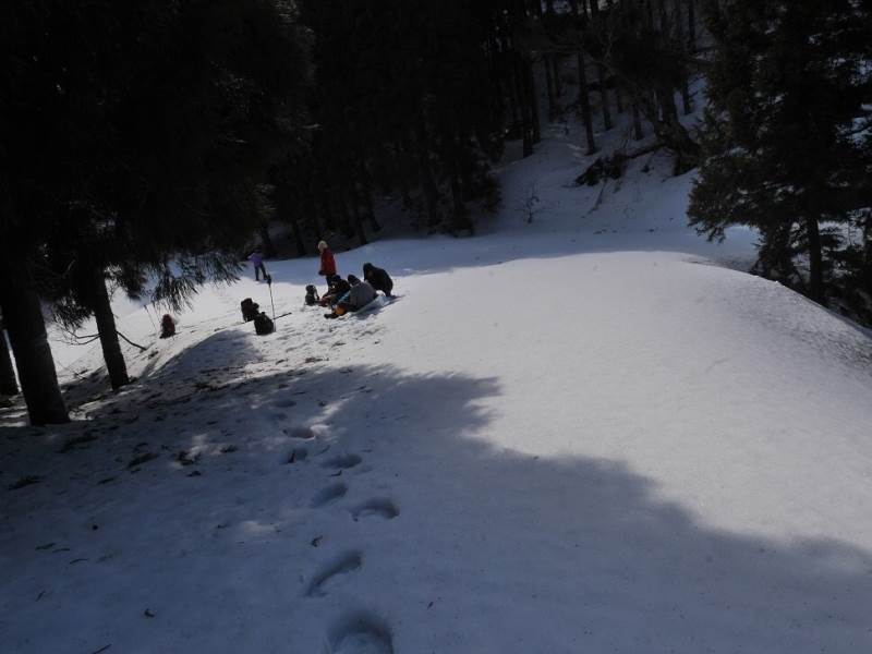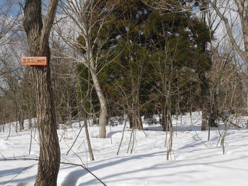 今日はスノーハイクは無理かなと思っていたけど、頂上に近づいてくると数十センチの雪が現れワカンを装着することに。荒谷山頂上は広く青空も広がり、少しスノーハイクを楽しむことができました。雪がなかった分、15時13分のバスで早めに帰ることができてよかったかな。