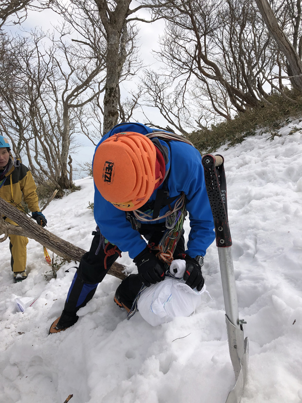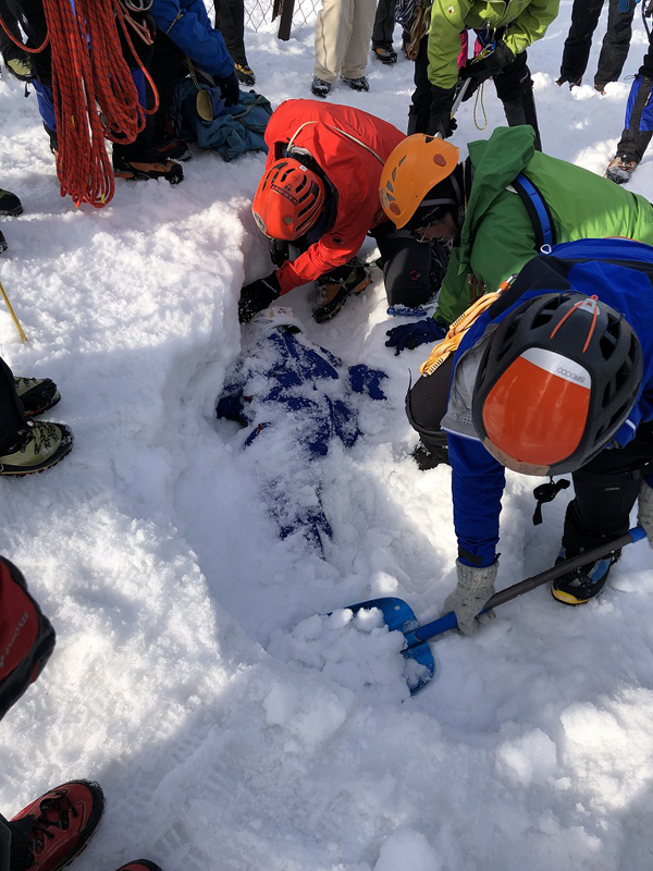 - 雪崩に埋もれた人の救助訓練