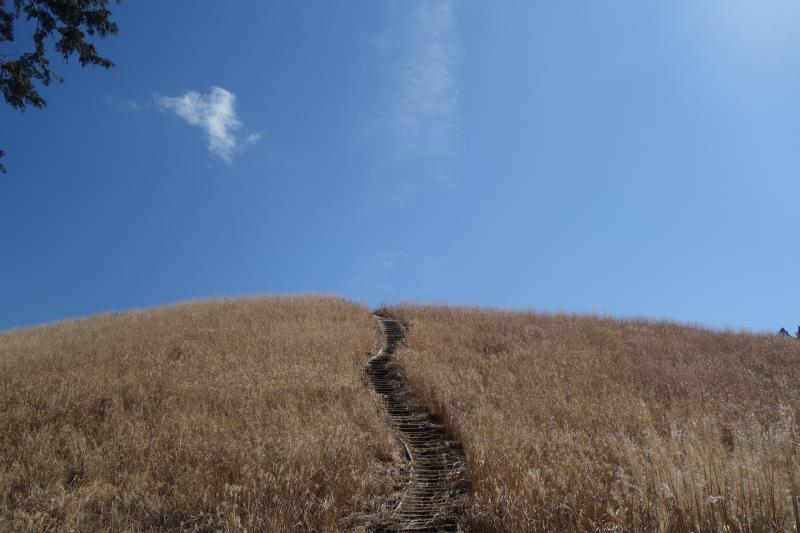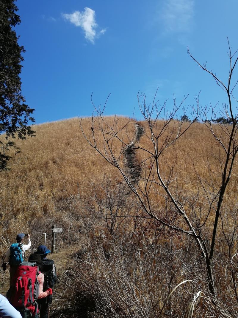 頂上まで続く木段に息が上がりますが、辺りには枯れてはいるもののススキの原が見事です。