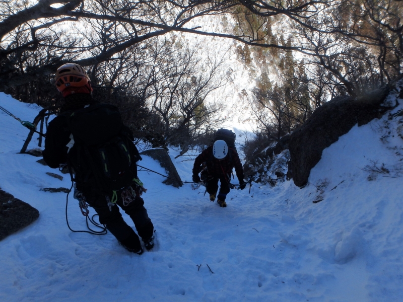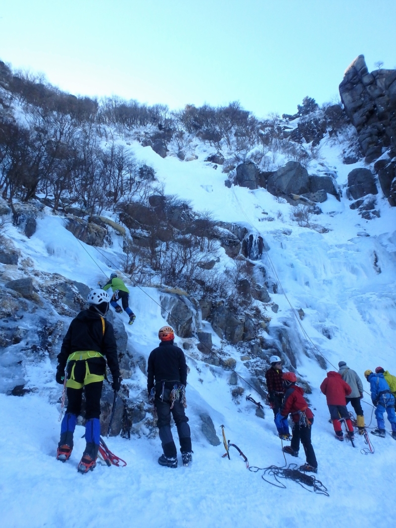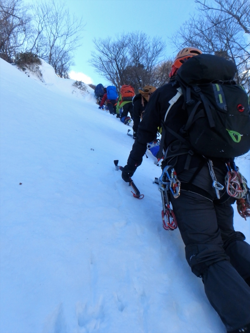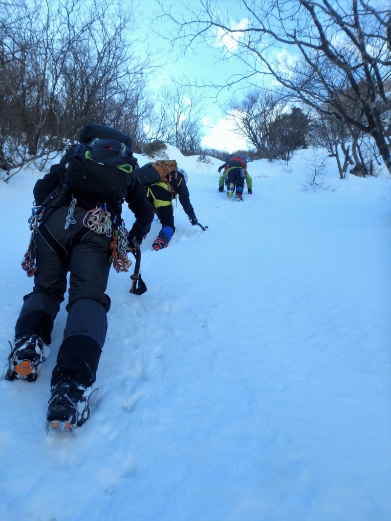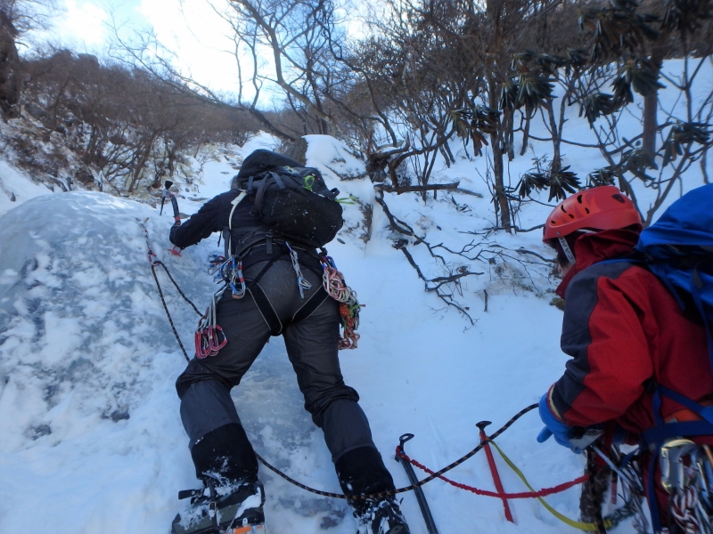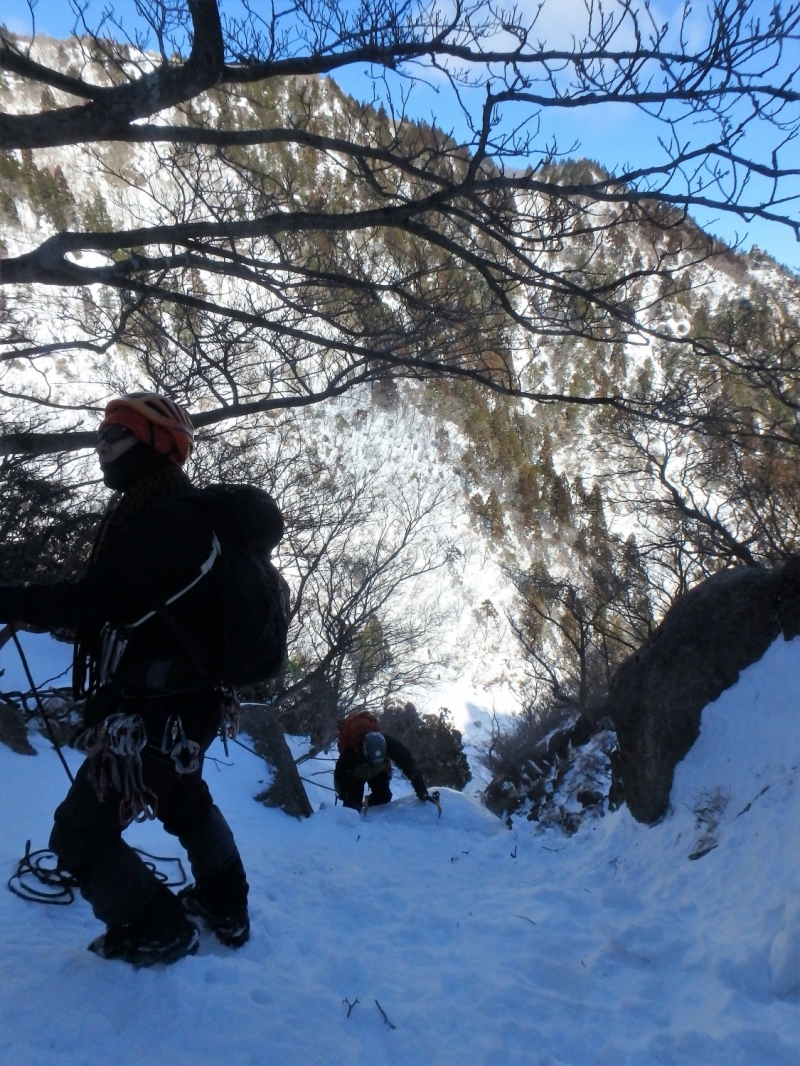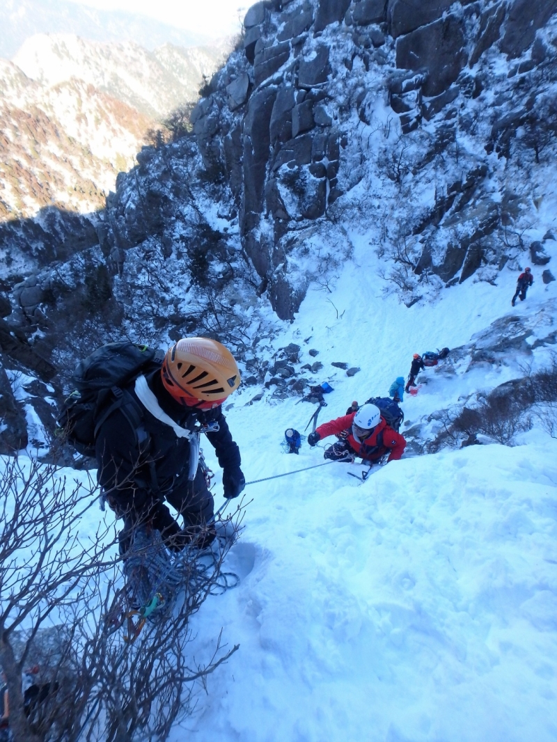 鈴鹿αルンゼ~第三ルンゼは何度も行っているが、今回は特に雪が多いようだ。おかげでアルファールンゼの氷に雪がたっぷりかぶり普通の雪山歩きの様になってしまった。傾斜の強いルンゼを上がりレストハウスで昼食後第三ルンゼに降りてアイスクライミング遊び最後は第三ルンゼを直登して散策道に出た、16時過ぎまでたっぷり楽しみロープウェイで下山した。  報告:Mr.Tani.Yoshi