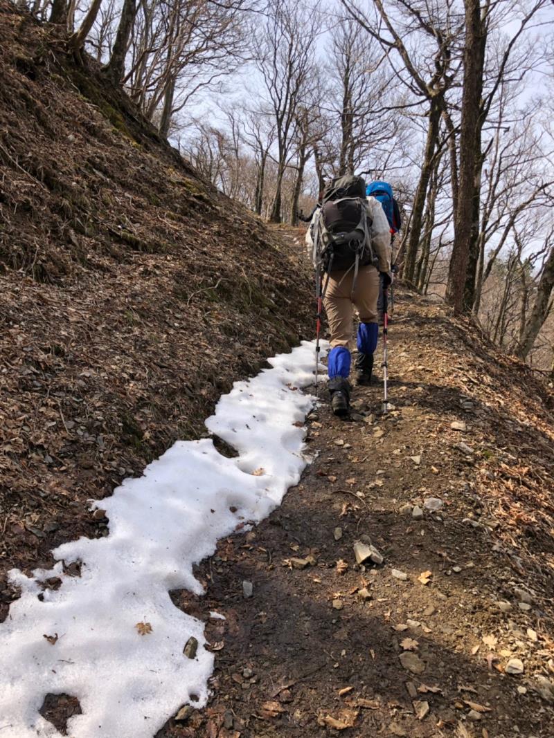 明神平が近づくにつれ稜線から吹き下ろす風と僅かながらの残雪で火照った身体も心地良く明神平に到着。