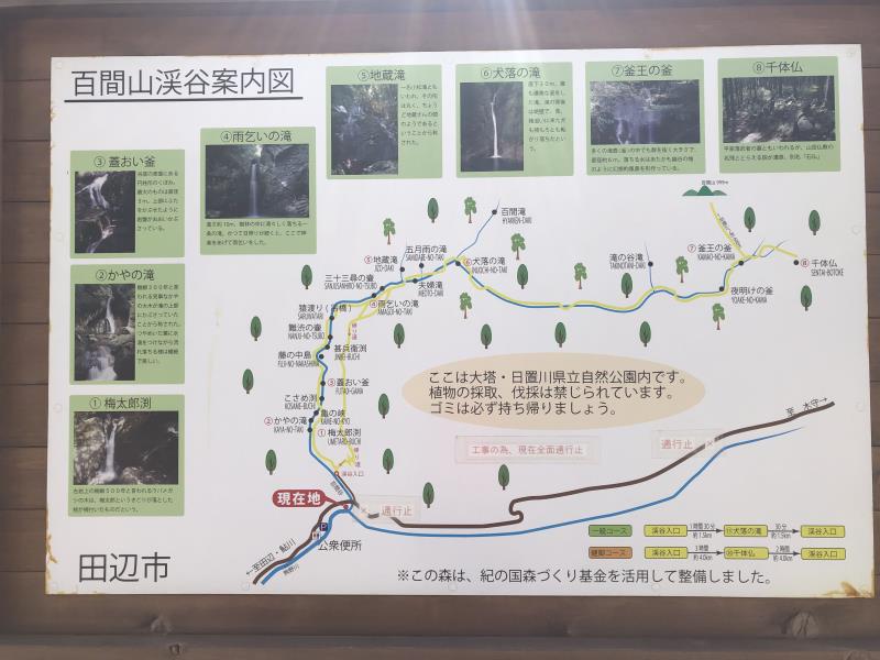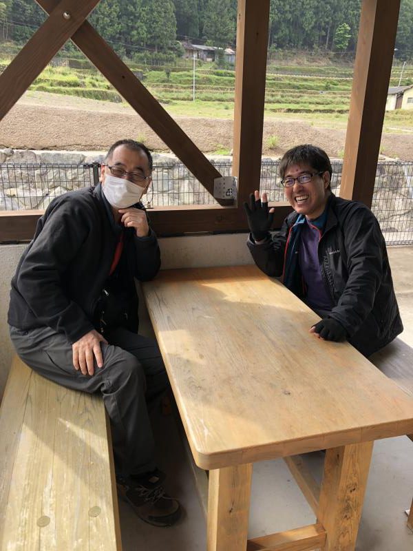 午前6時起床。前日の疲れが残る中、すき焼きの残りにうどんを入れて、朝食をとりました。本日、登る予定の法師山ですが、予定していたルートで林道が一部崩落していることや、他のルートで上る場合の下山時刻等、今日中に京都に戻ることも考え、近くにある百間山渓谷の散策をすることとなりました。何よりも前日の急登の疲れもあり・・・。